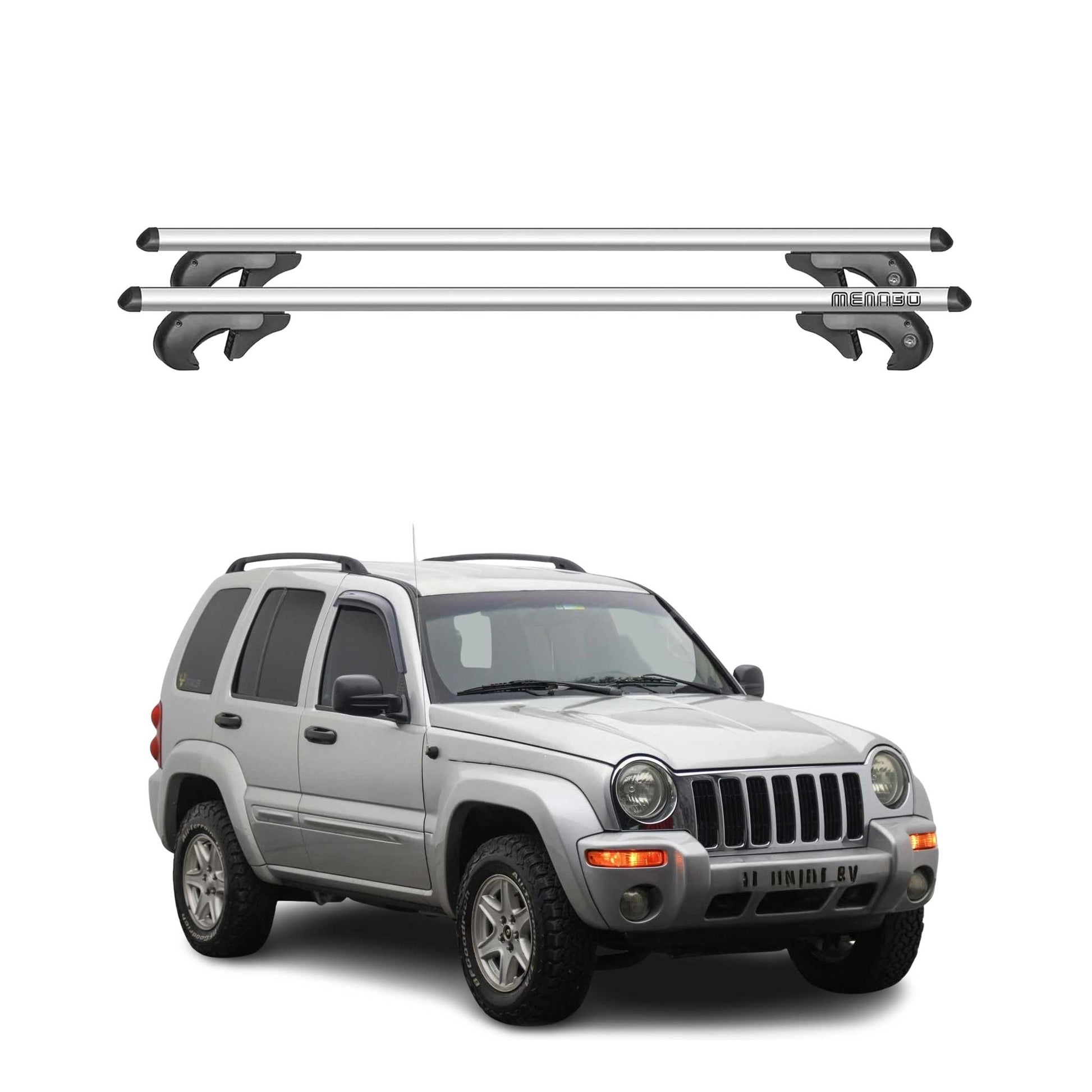 Menabo Barras de Techo Coche Barra para Jeep Cherokee KJ 2001-2008 Gris Alu 2Pza