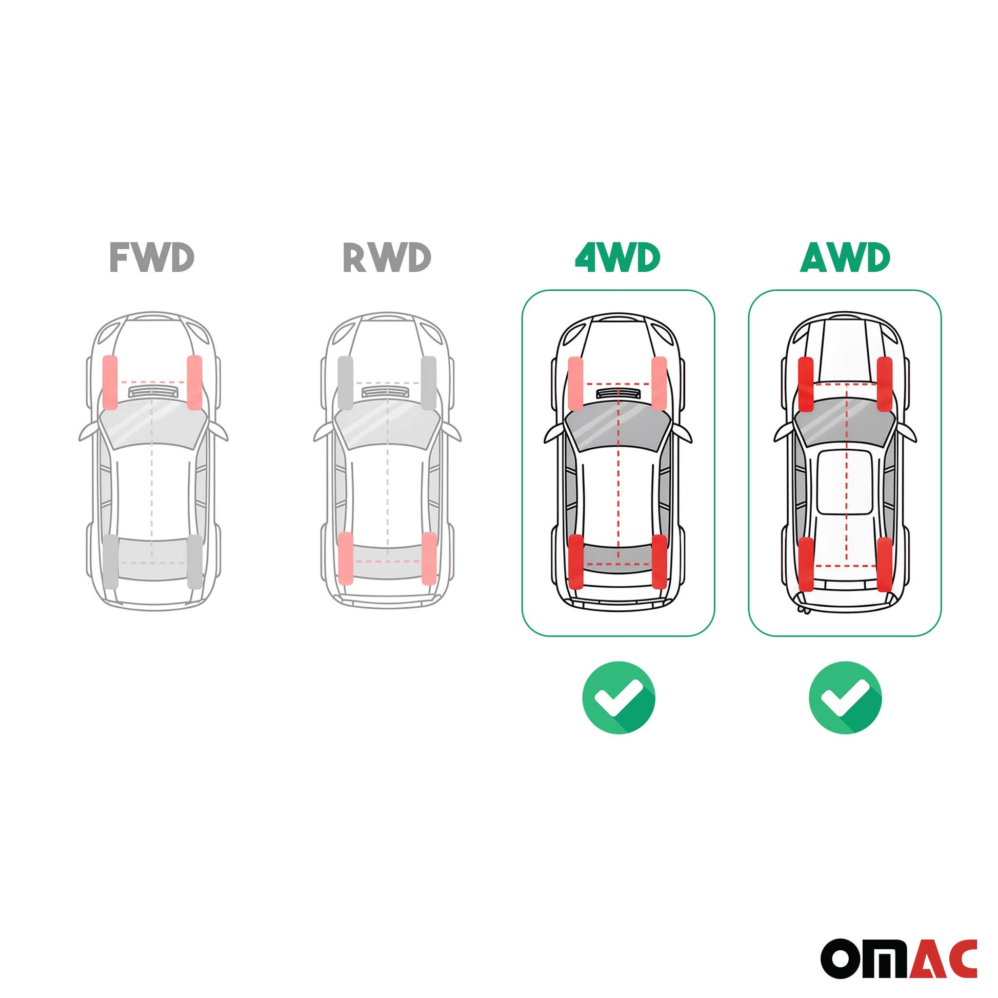 4WD: Compatible con tracción en las cuatro ruedas.