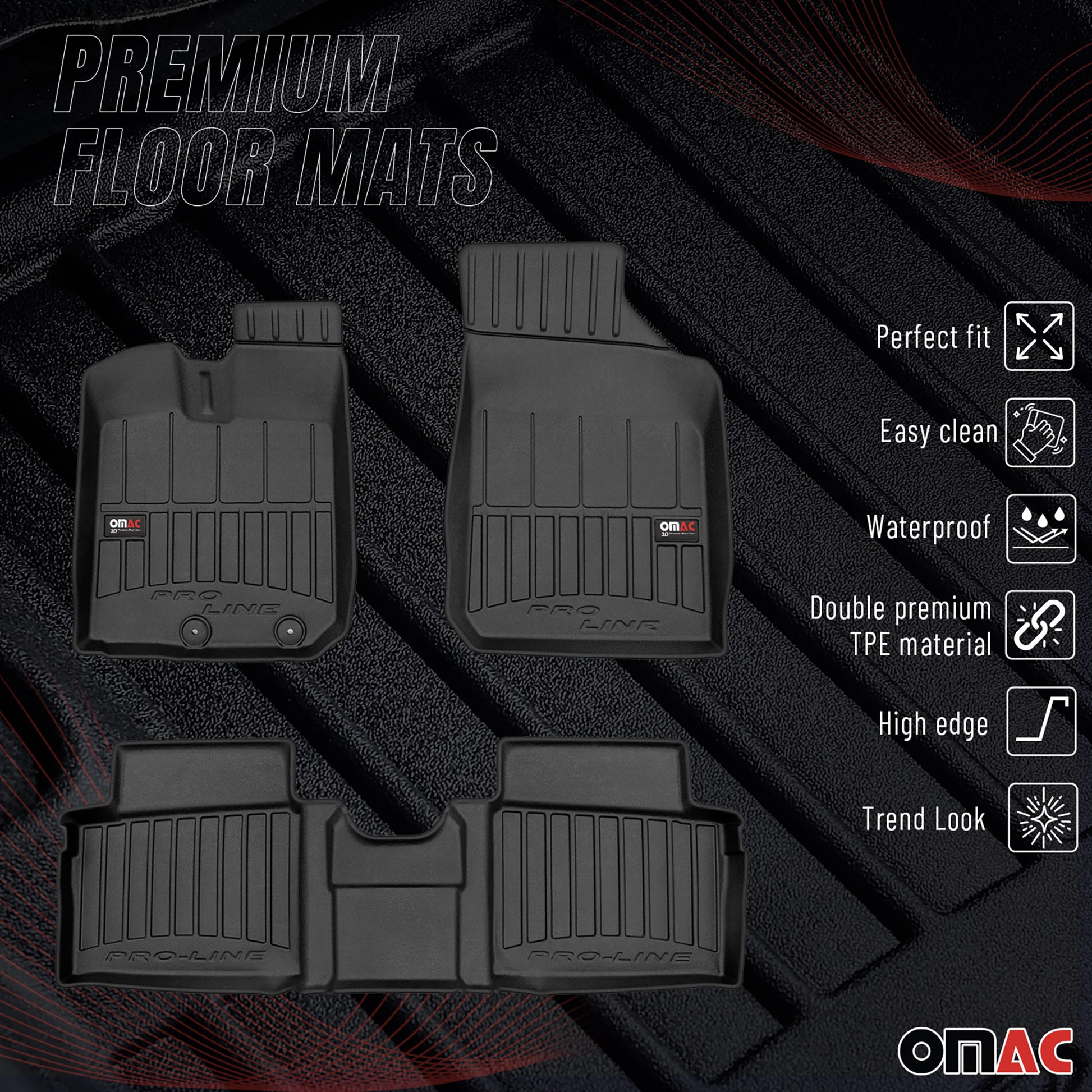 OMAC Premium Alfombrillas De Coche para Dacia Spring 2021-2025 Negro TPE Goma 4x