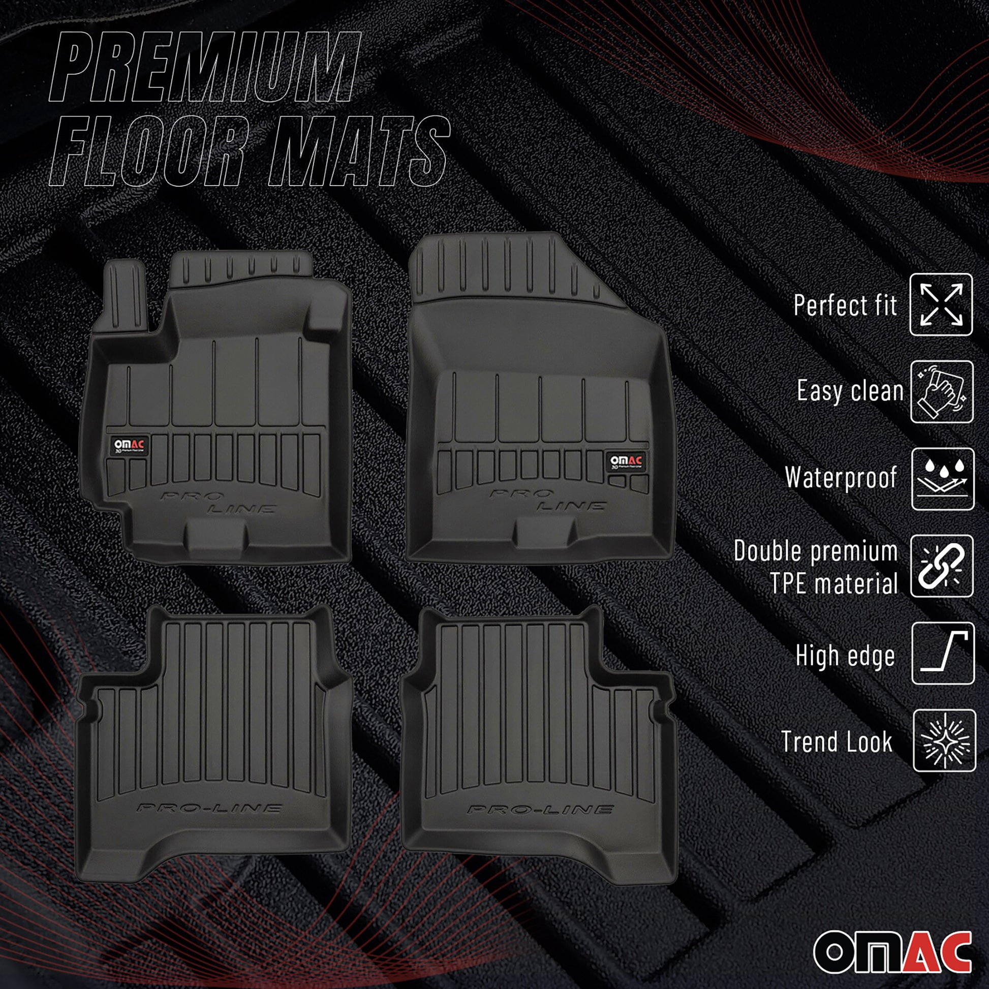 OMAC Premium Alfombrillas De Coche para Suzuki Swift 2017-2025 Negro TPE Goma 4x