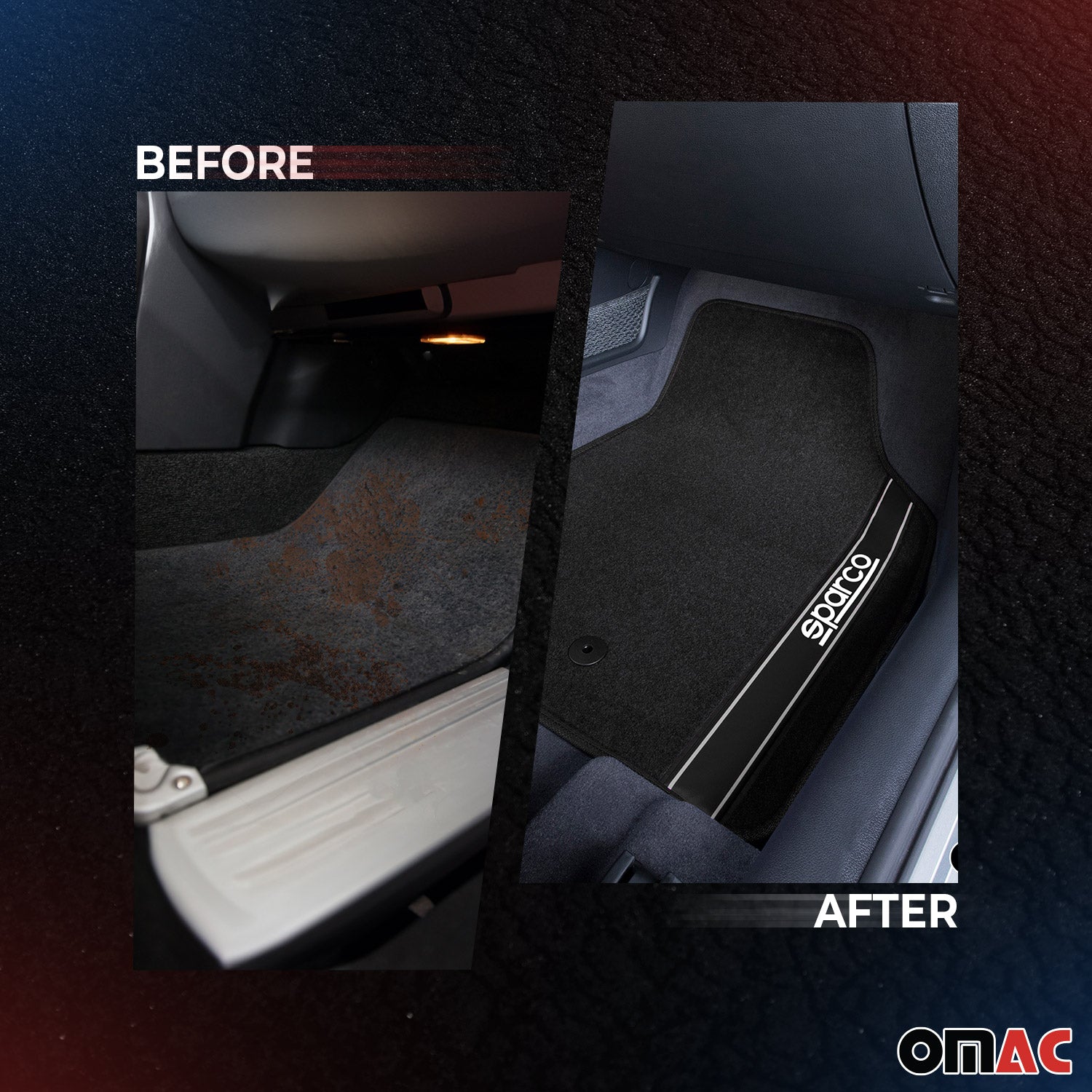 - Calidad robusta con SPARCO: Material de alfombra negra de 450 g para una durabilidad óptima.